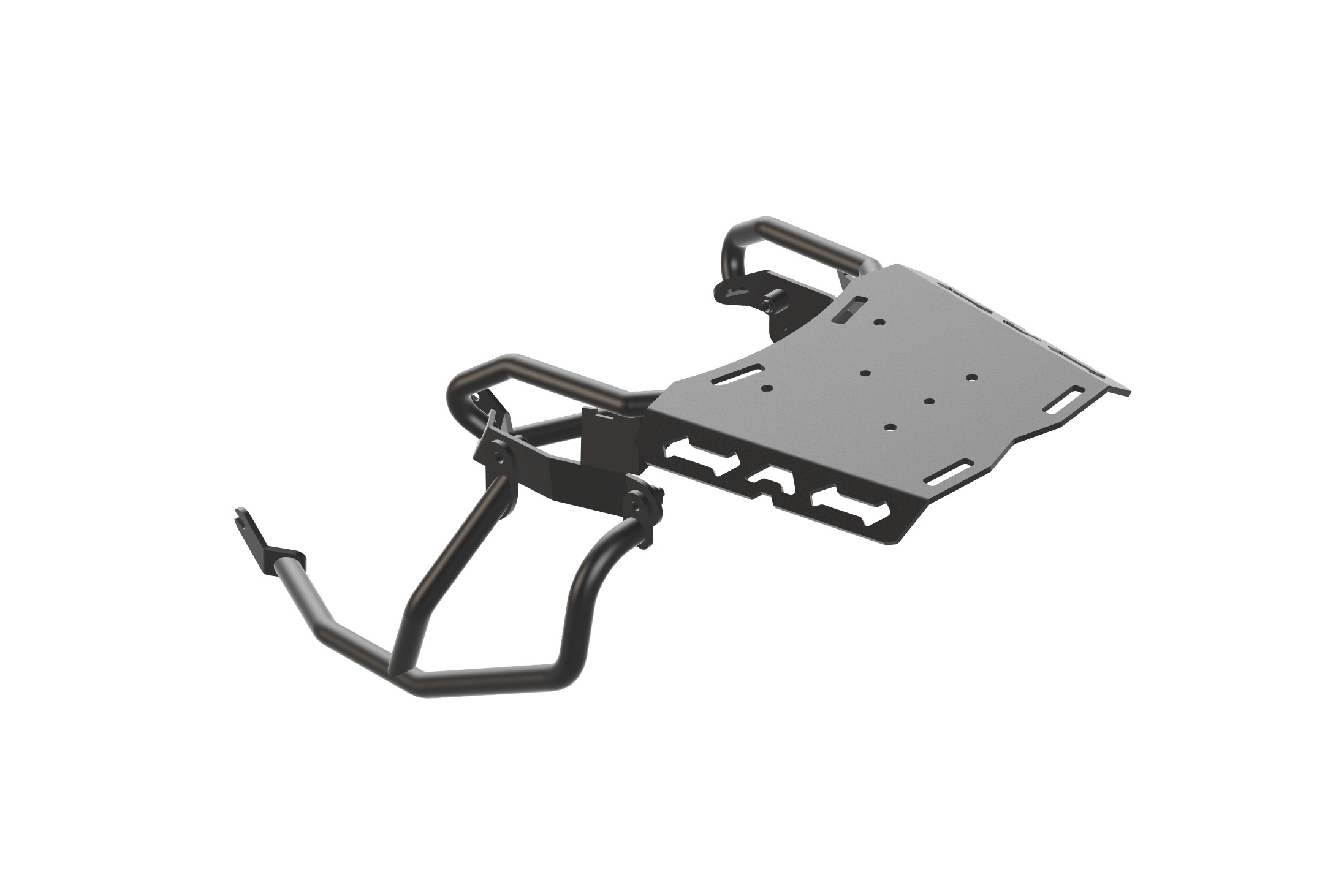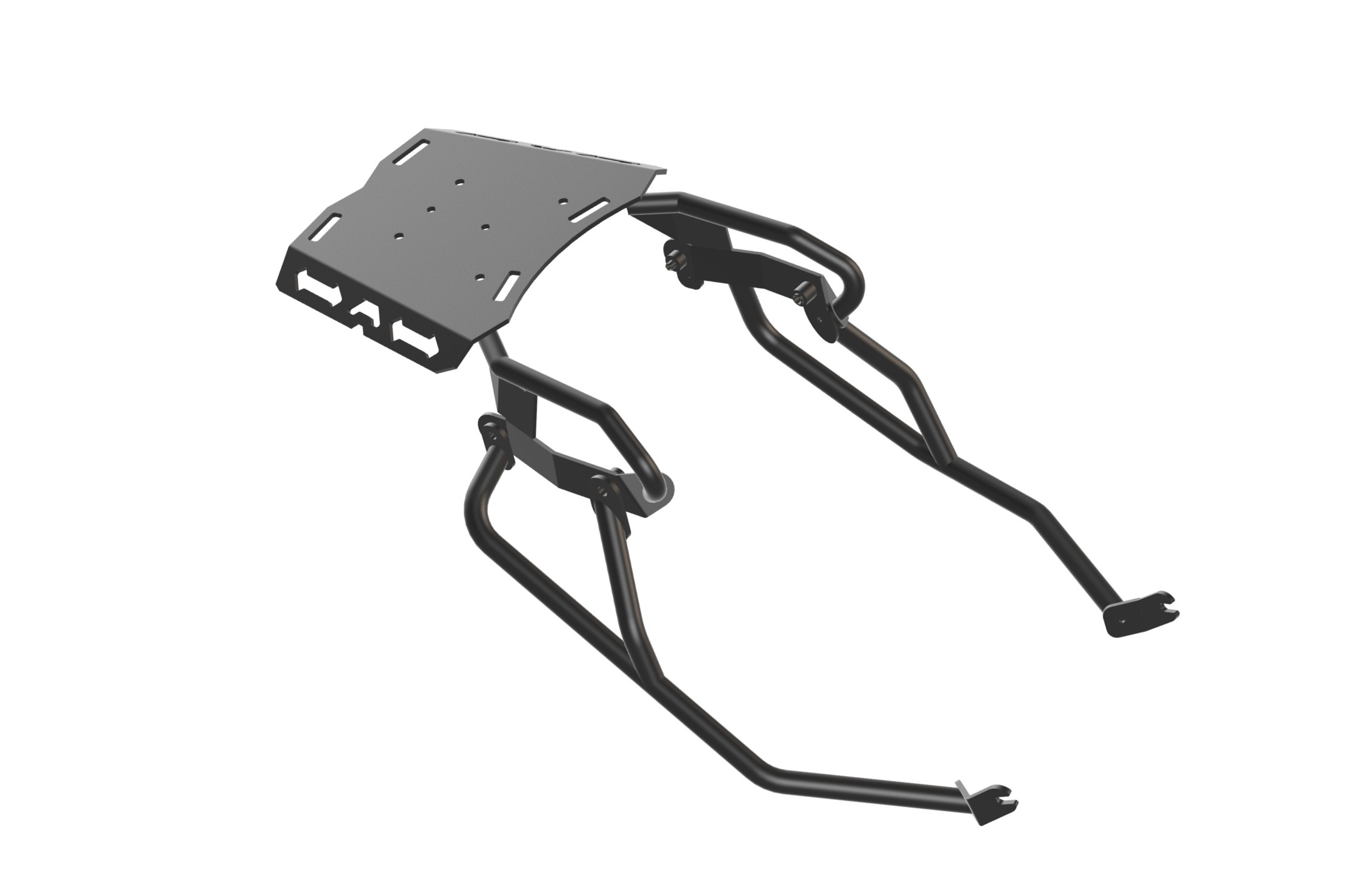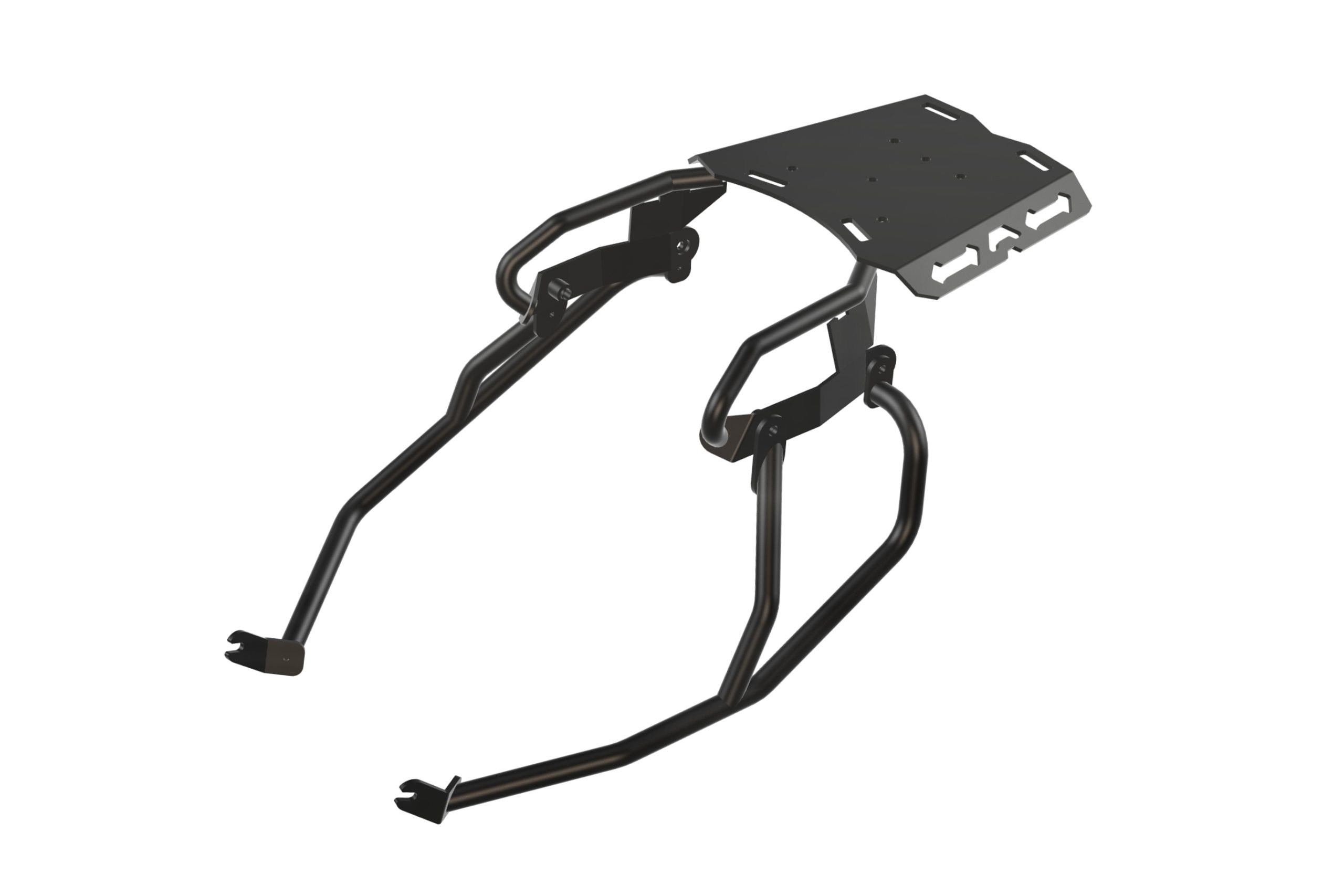 A simple and lightweight side luggage support, designed to hold your soft luggage and keep it from bouncing and folding under your seat, and coming in contact with the rear wheel or the exhaust, on your Tuareg 660.