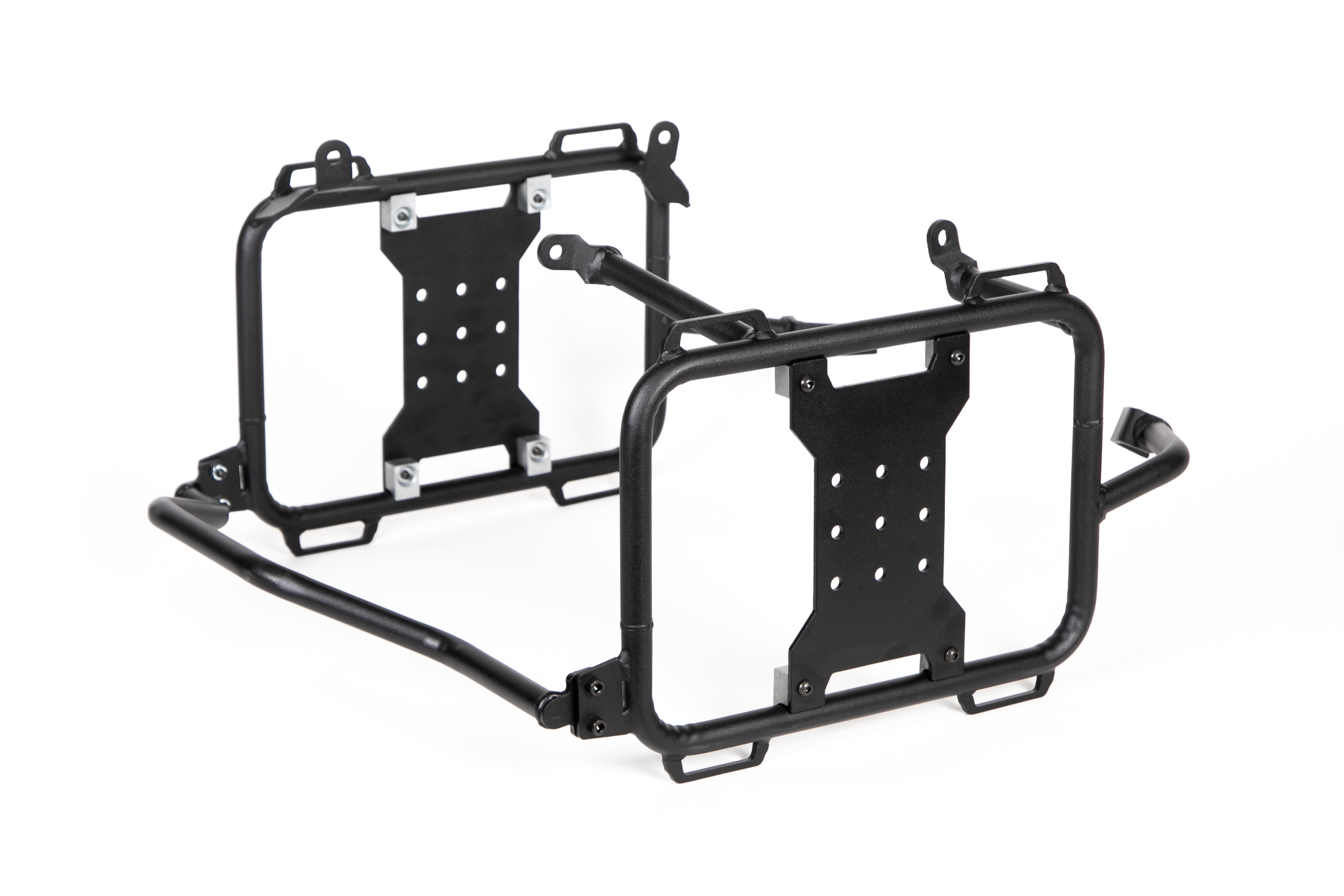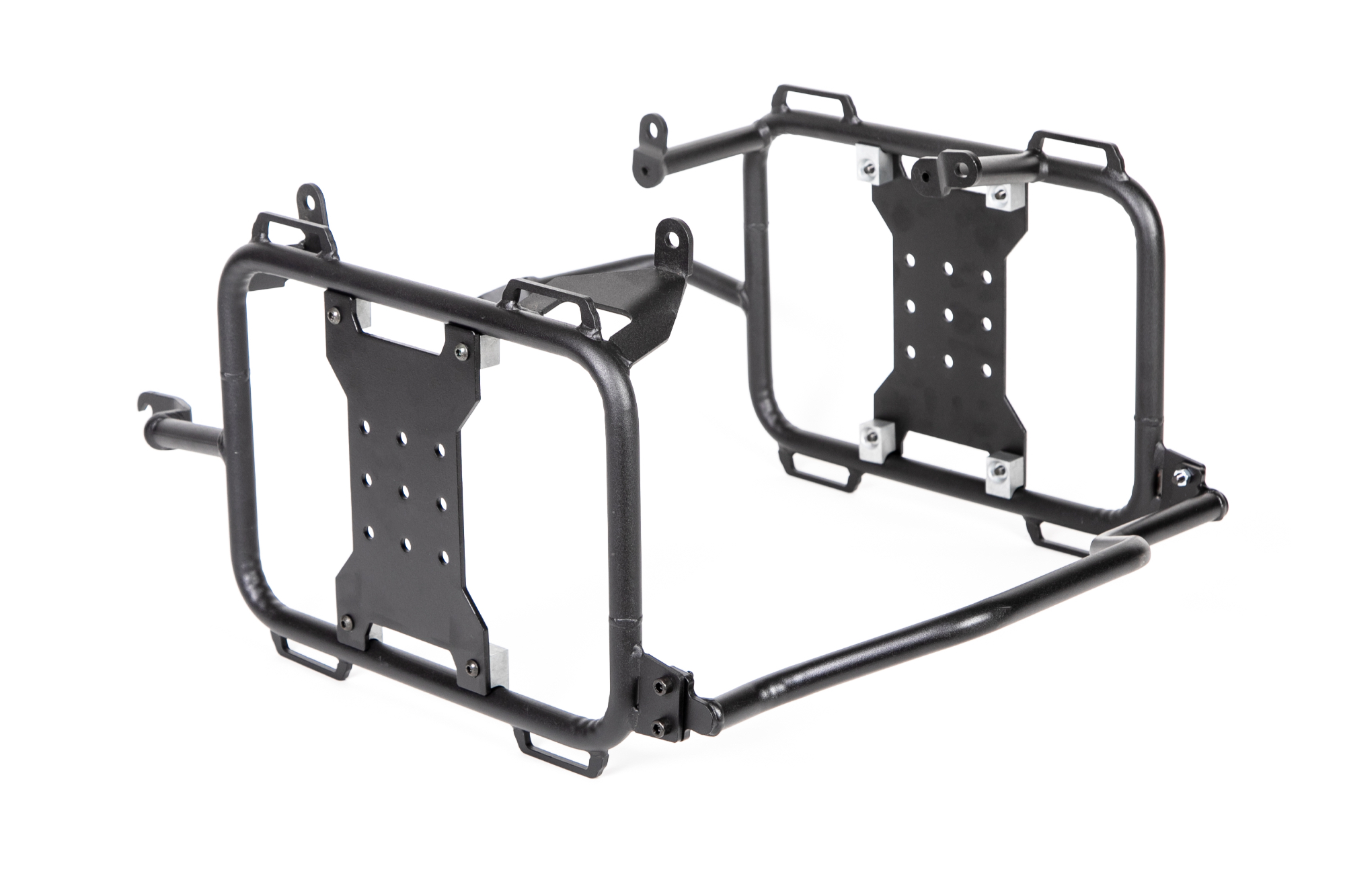 Progettato da Adventure Moto Australia e prodotto da Outback Motortek. Il nuovo telaio X-Frame è il supporto universale che permette un trasporto sicuro di borse laterali morbide, valigie laterali rigide e serbatoi supplementari Rotopax per acqua e benzina. Il telaio è verniciato a polvere e, oltre ad offrire vari punti di aggancio, include una piastra a forma di X, forata su più punti, che permette la disposizione uniforme del peso dei bagagli e l’installazione di accessori dedicati. È possibile rimuovere la piastra ad X per l’utilizzo di valigie rigide o per ridurre il peso complessivo del telaio.